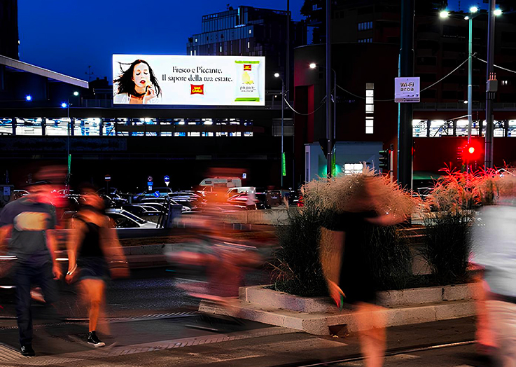 Ogni messaggio diventa un punto d’incontro tra brand e pubblico: una call to action visiva e consapevole, resa ancora più potente dalla spettacolarità dei maxischermi.