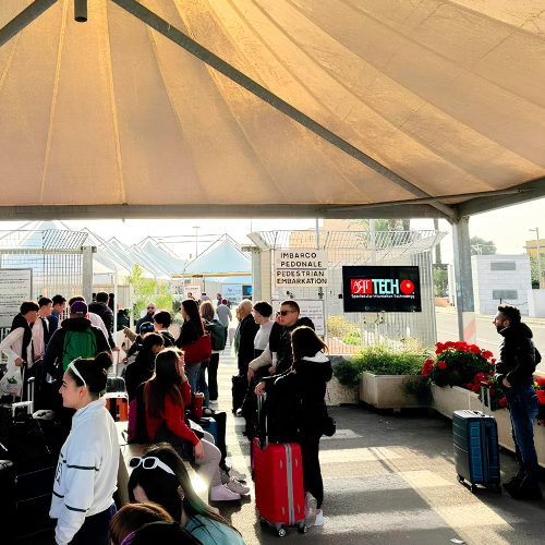 Art Tech atterra negli aeroporti, nei porti e nelle stazioni con maxischermi scenografici e ad alto impatto visivo, ideali per valorizzare la comunicazione pubblicitaria e informativa in luoghi dove la dinamicità è la regola.