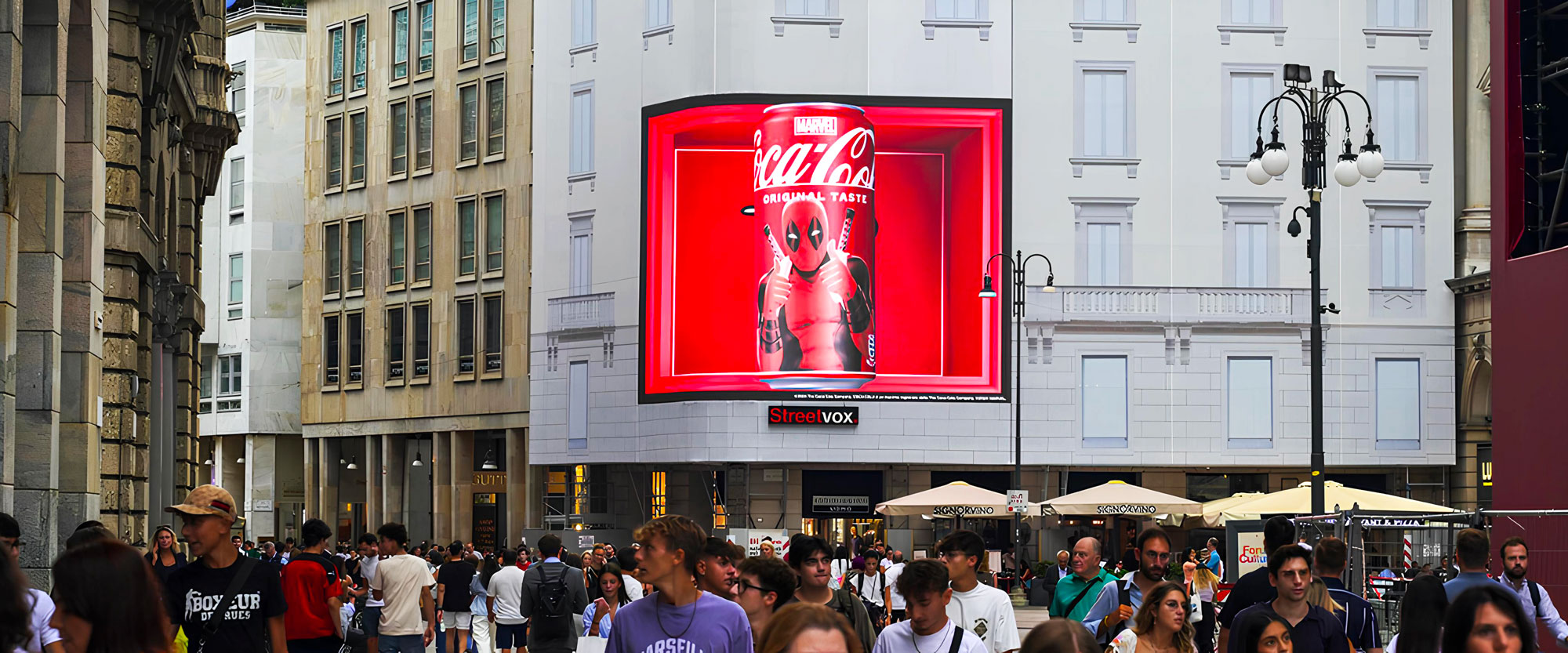 Vega è il prodotto di punta per esterni, caratterizzato dalla sua luminosità straordinaria, superiore a 10.000 nits, che garantisce una visibilità eccezionale in qualsiasi condizione di luce.